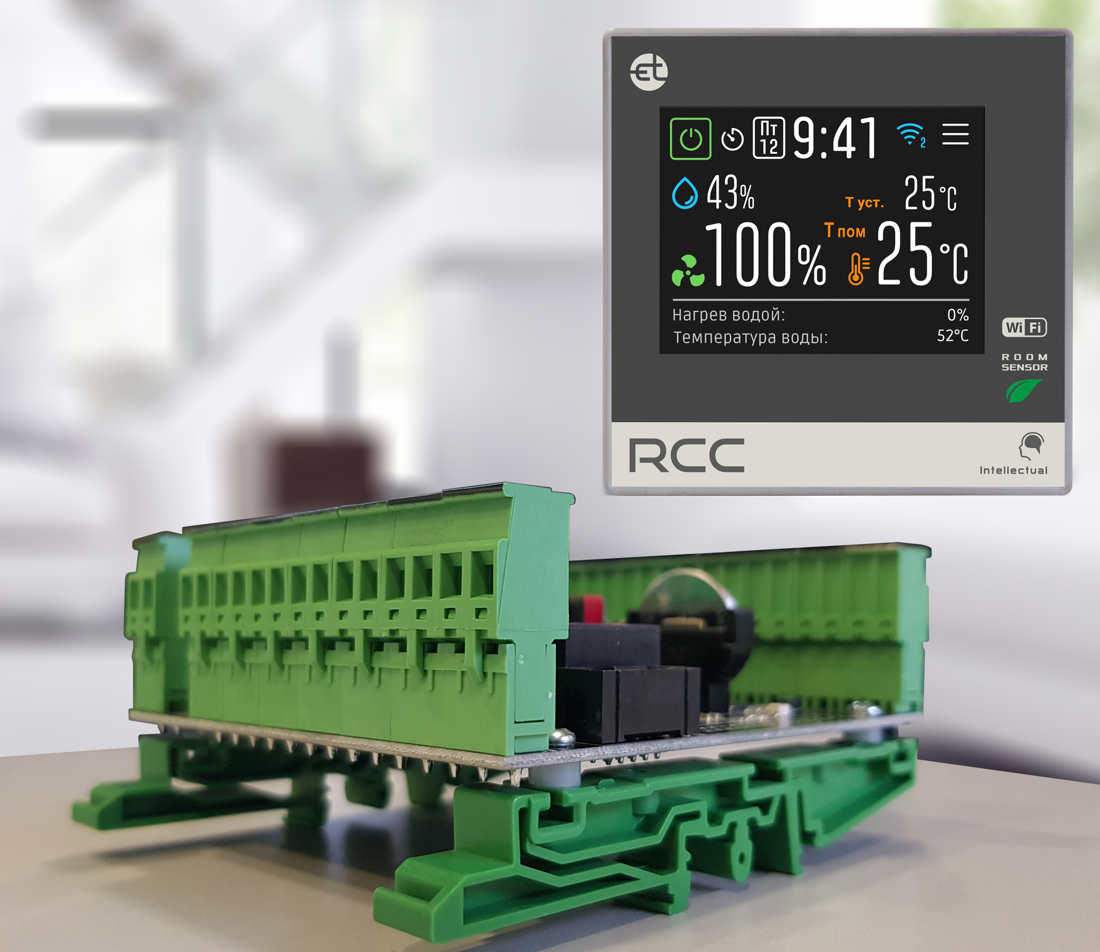 • Комплектуется пультом (цветной панелью) управления RCC со встроенными: Wi-Fi модуль,  датчик температуры и влажности